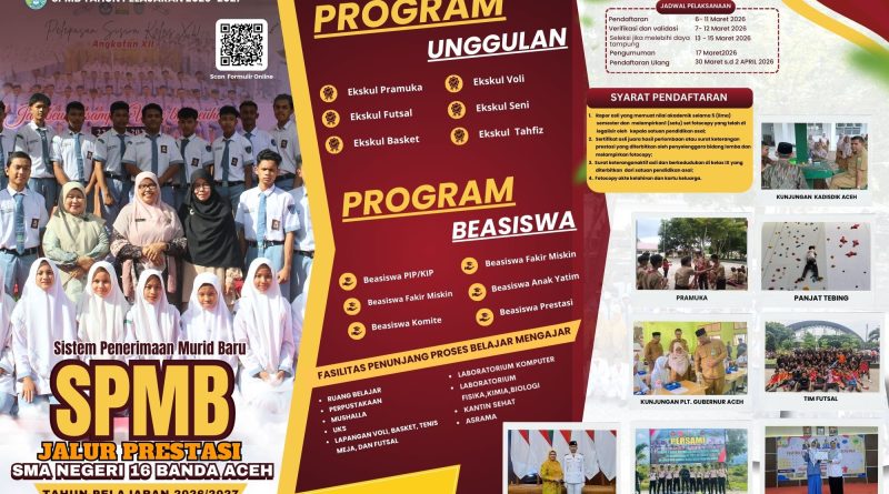 SMA NEGERI 16 BANDA ACEH KEMBALI MEMBUKA PENDAFTARAN SISWA/I BARU TAHUN PELAJARAN 2026/2027